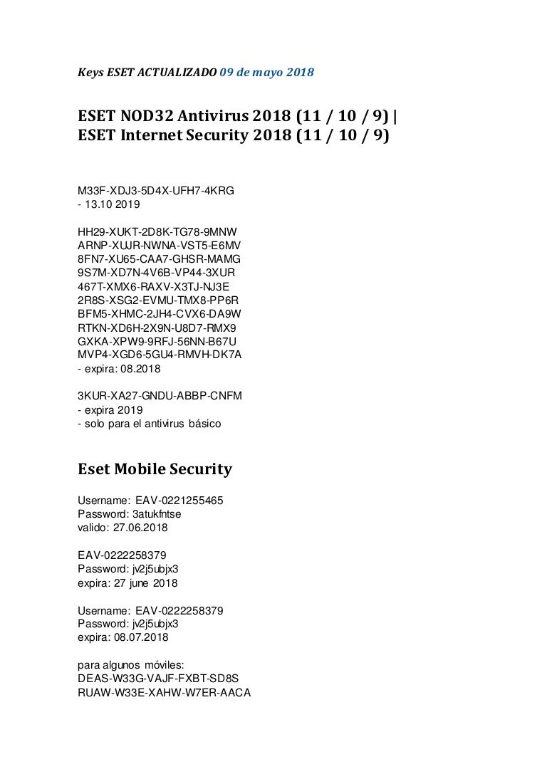 Nod32 keys 2018 | Main page | ovirturpoe Downloading the NOD32 Keys is pretty simple. That also gives the customers the decision to change the direction of the antivirus. Eset Nod32 Keys Username And Password 2018 Free Download CrackNest. For this purpose we decide to use maker without any cost to its user.