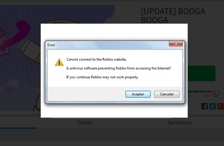 Help Roblox cannot connect to the roblox website What you need to do is make sure that ROBLOX is uninstalled, go to: Computer, Local disk (where you had ROBLOX installed), Users then go to the user where you play/installed ROBLOX onto, go to AppData, Local, then open the .rar and drag Roblox folder from there to Local and accept when it asks to overright any files click "Yes". Virus is blocking Internet access, how to eliminate it? - PCRisk.com At the top right corner of the main window, click the 'wrench' icon. In the opened drop down menu, choose 'Internet Options'. 2. In the opened window, select the 'Connections' tab. 3. In the 'Connections' tab, click the 'LAN settings' button. 4. In the 'Lan settings' window, ensure that the 'Use a proxy server for your LAN' option is not ...