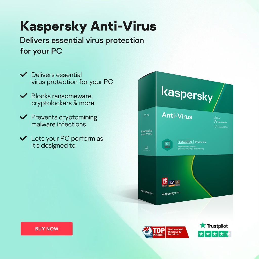 New Kaspersky Antivirus Software Plans (2023) | Kaspersky Kaspersky Anti-Virus (1943 Reviews) Essential virus protection for your PC Our top-rated Windows antivirus guards you from threats like ransomware, cryptolockers & hackers. It's easy to use and runs seamlessly in the background to keep your PC safe. Blocks viruses & malware in real-time Stops hackers taking over your PC remotely